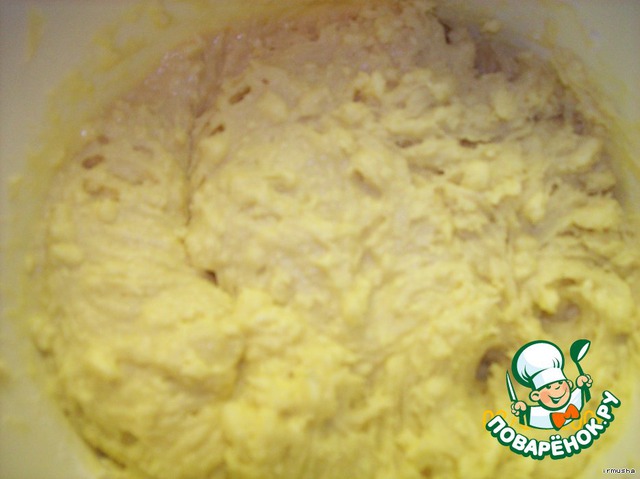 Перемешать, добавить ванилин, муку. Тесто густое, лучше мешать миксером.