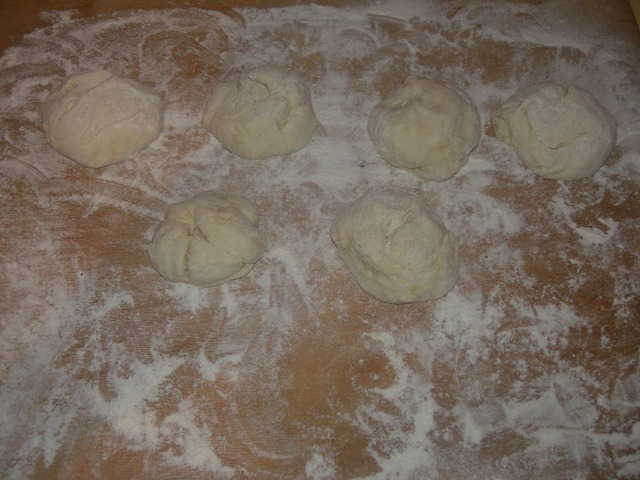 тесто разделить на 6 шариков. по одной раскатывать по форме противня.