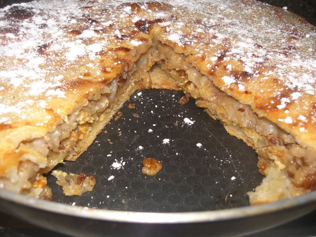 | Балкансая кухня. Подают в Черногории, Словении, Югославии, Словении... Пирог с творогом, яблоками, изюмом, маком, орехами. |