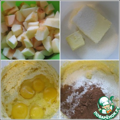 Яблоки посыпать 2 ст. л. муки и потрясти их, чтобы они покрылись мукой и не опали вниз при выпечке.
