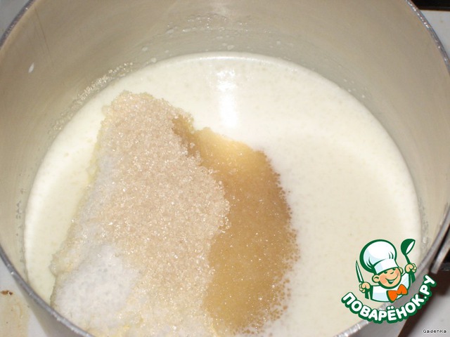 Масло, сахар, молоко и отложенный кокос смешать, на слабом огне растворить сахар и растопить масло.