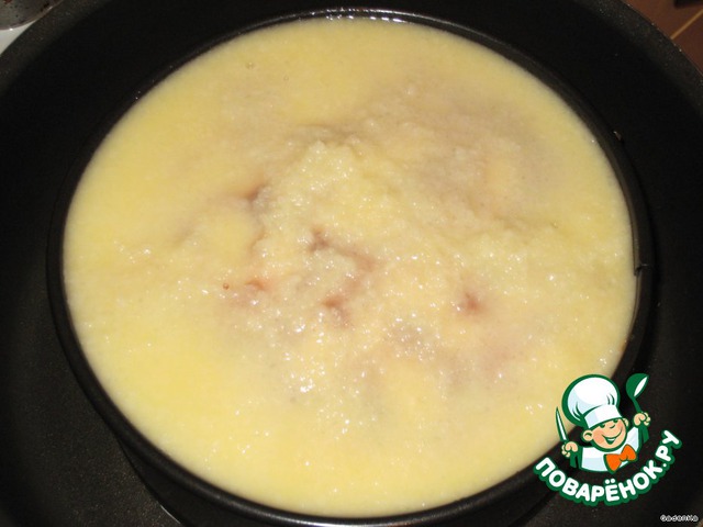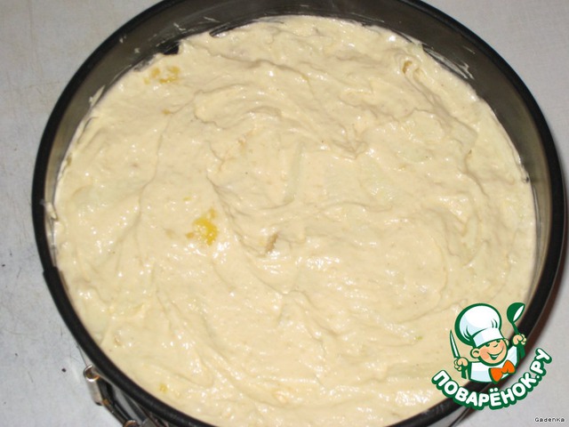 Тесто выложить в форму и выпекать в предварительно нагретой духовке 45-50 минут при 180 градусах.
