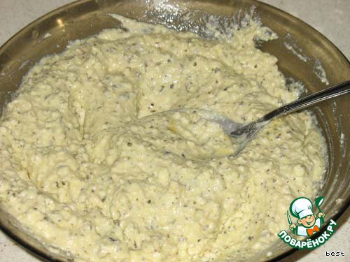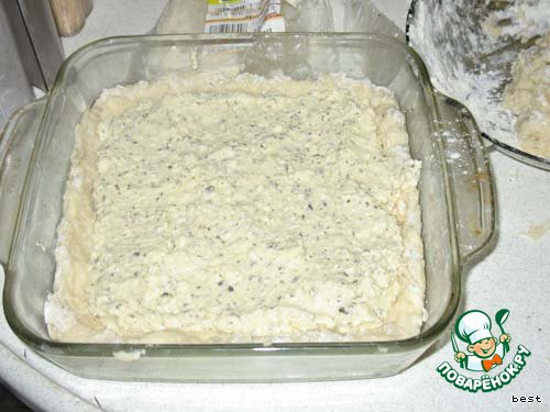 Форму (d=20-22см) смазать маслом, выложить 1/2 часть картофельной массы.