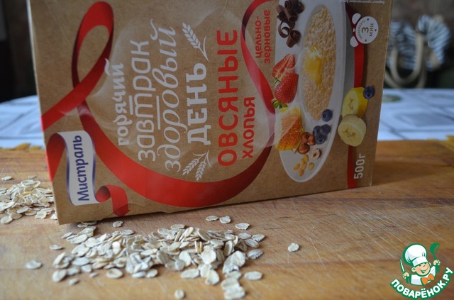 Для теста и начинки сегодня я использую цельнозерновые овсяные хлопья ТМ "Мистраль". Хлопья приготовлены по современным технологиям. Поэтому вся польза злаков сохраняется в расплющенном зерне, а время приготовления их уменьшается до минимума.