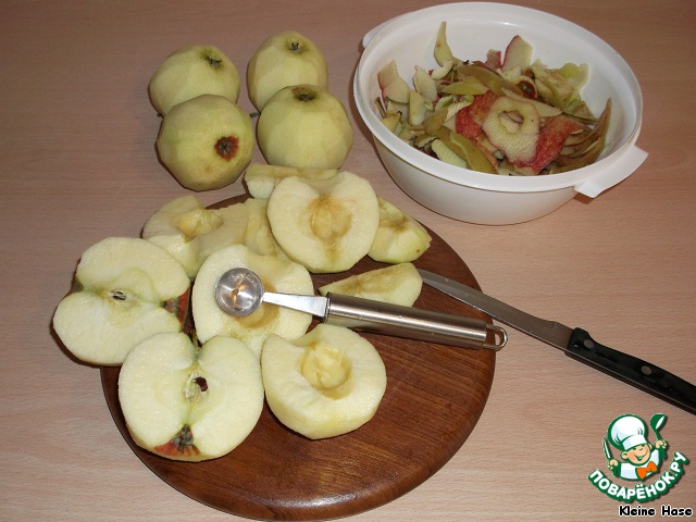Яблоки помыть, почистить, освободить от семенной коробки.