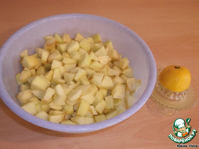 Яблоки порезать небольшими кусочками и взбрызнуть лимонным соком, чтобы не потемнели.