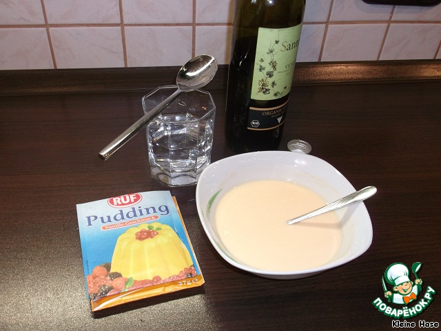 2 пачки ванильного пудинга размешиваем с 5-ю ст.ложками вина и 5-ю ст.ложками холодной воды.