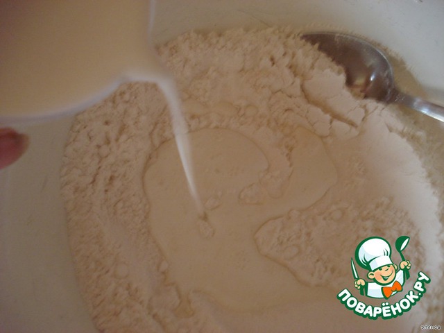 Смешать муку, яйца, 200 гр. молока,ванилин и соль.