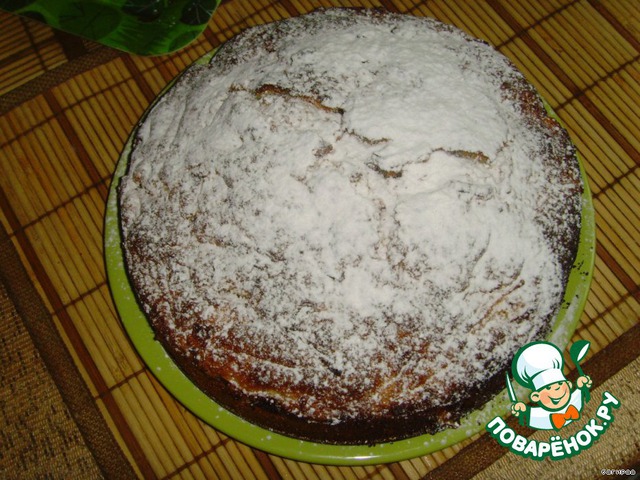 Готовый пирог извлечь из формы, дать ему немного остыть и посыпать сахарной пудрой.