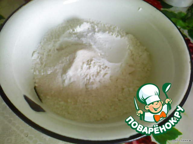 В миску высыпаем муку, ванильный сахар, разрыхлитель.