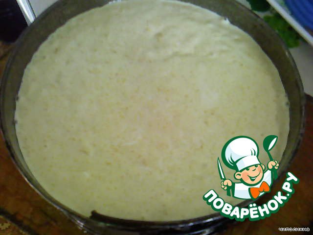 Форму смазываем растительным маслом, посыпаем мукой и выливаем полученное тесто.
