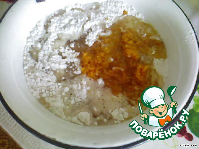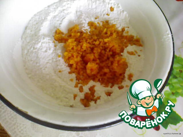 Все сыпучие продукты перемешиваем и добавляем натёртую на мелкой тёрке цедру апельсина.