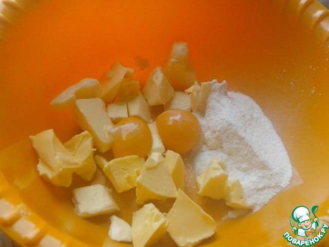 Отделить желтки от белков. В большой миске миксером взбить масло с желтками и сахарной пудрой.