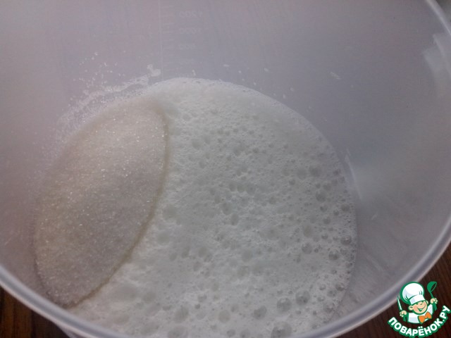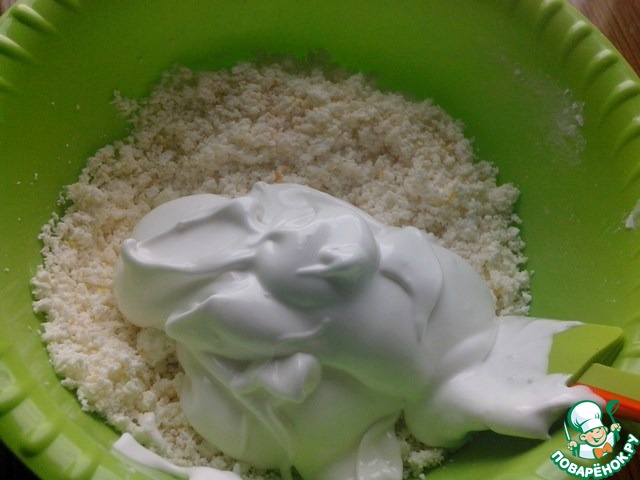 С лимона натереть 1 ч. л. цедры и выжать 1 ст. л. сока. Белки взбить с сахаром, добавив выжатый сок лимона, в крепкую пену.
