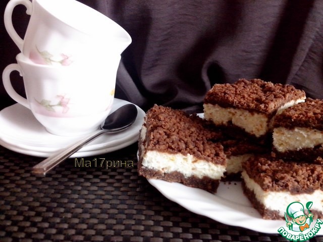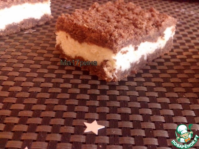 | Своеобразный по вкусу пирог, с приятным шоколадным ароматом. Нижнее тесто забирает влагу из начинки и перестаёт быть сыпучим, в то же время не становясь размокшим. Верхний слой теста хрустящий и очень рыхлый. Начинка мягкая, слегка пружинистая. |