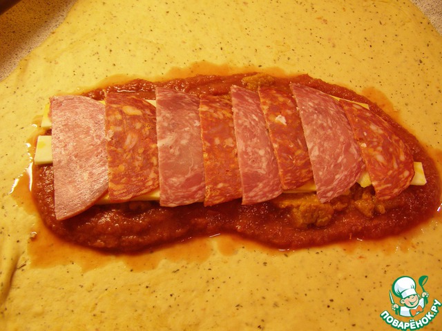 Затем кладем салями острую ( hot) чередуем с обычной (mild)