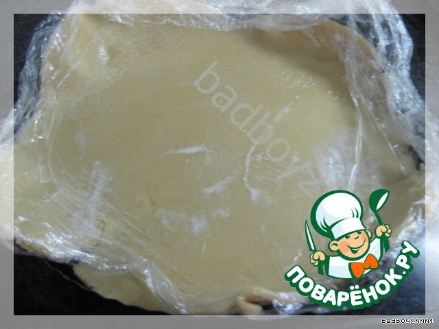 Получившиеся тесто завернуть в пищевую пленку и отправить в холодильник минимум на 30 - 40 минут.