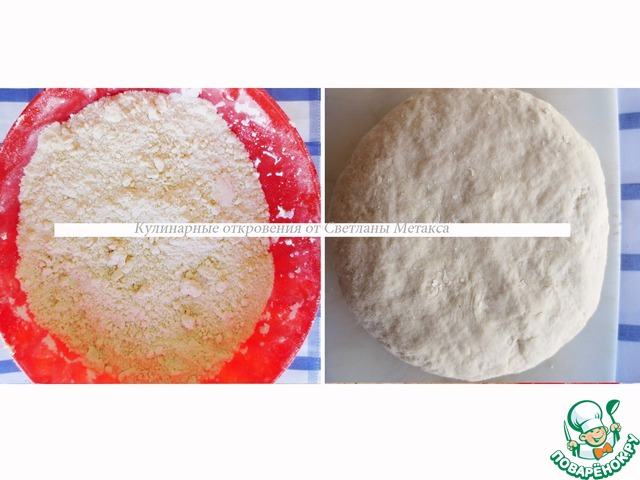 Добавляем сметану или молоко и замешиваем тесто. Собираем тесто в ком, заворачиваем в мембрану ( пленку) и оставляем в холодильнике на 1 час.