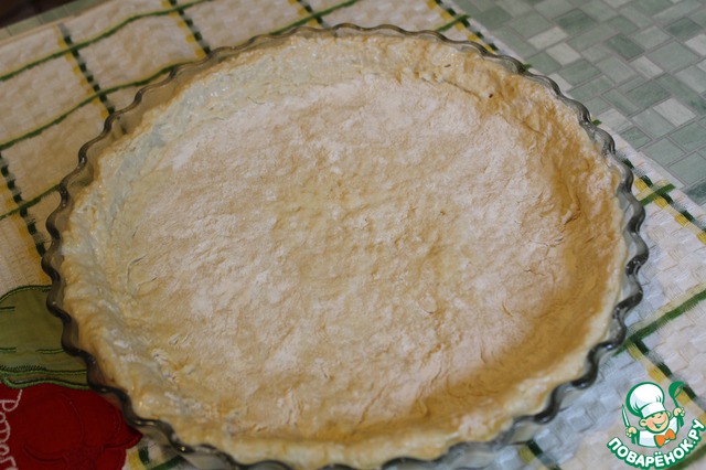 Выкладываю тесто в хорошо смазанную сливочным маслом форму, чуть припудриваю мукой и влажными руками распределяю по всей поверхности формы, формирую бортики.