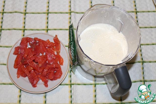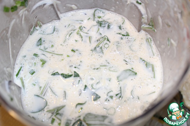 Сметану взбиваю с яйцами, мукой и тимьяном.