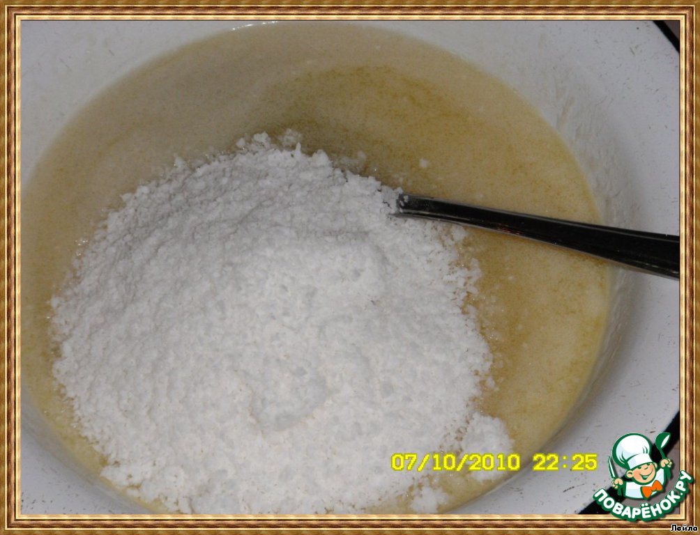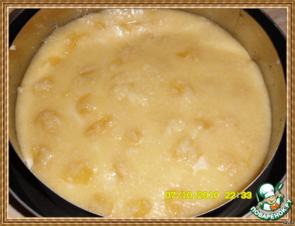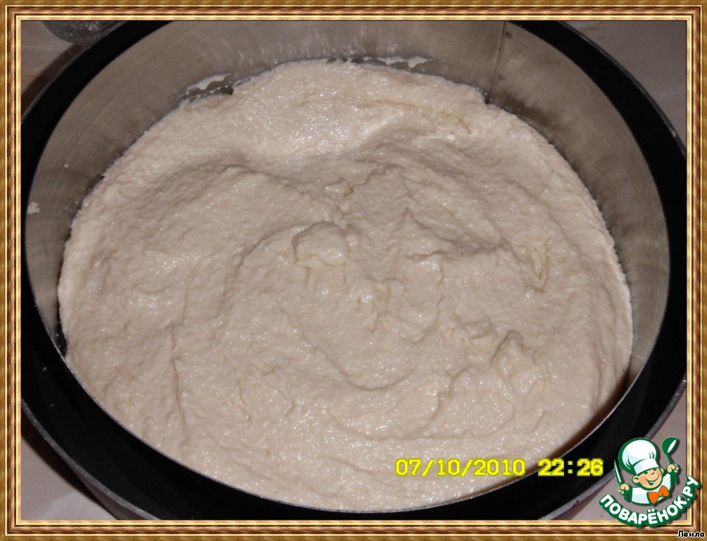 получается липкое тесто, которое мы выкладываем в смазанную маслом форму.