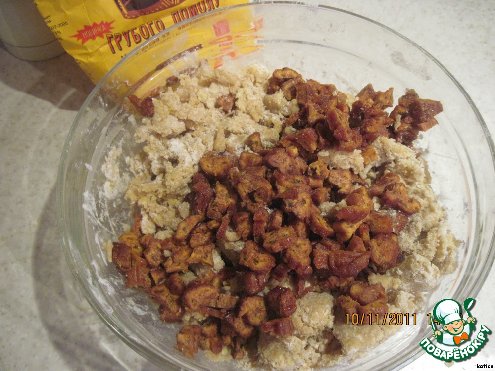 Добавить измельченные вяленые бананы, вымесить тесто.
