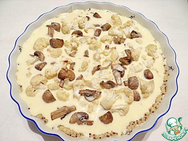| Предлагаю приготовить пирог с двумя видами сыра и запеченными цветной капустой и шампиньонами на основе из киноа. За рецепт благодарю Кевина Линча. |