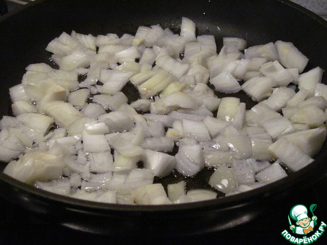 Лук очистить, измельчить и обжарить в течении 5 минут на растительном масле.