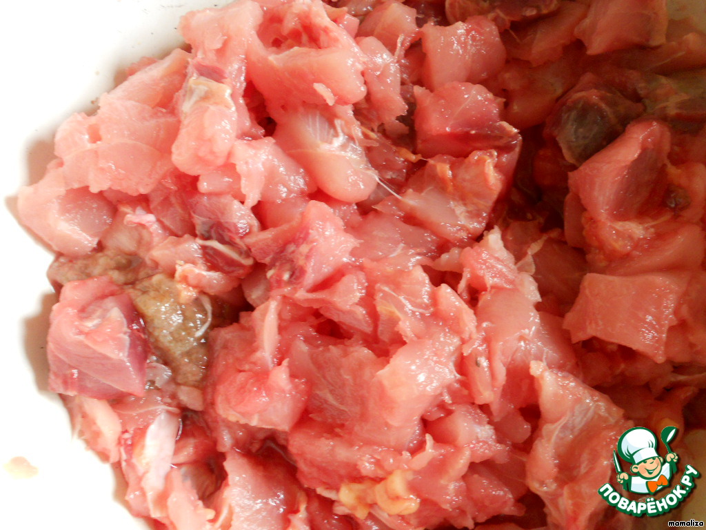 Приготовить фарш из рыбного филе, поджаренного лука и сала, сливок, перца и соли.