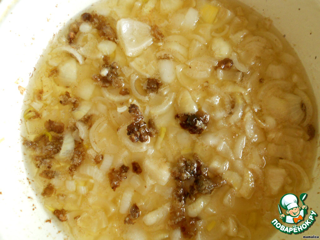 Сало нарезать кубиками, обжарить, добавить лук и слегка поджарить. Часть вытопившегося жира оставить.