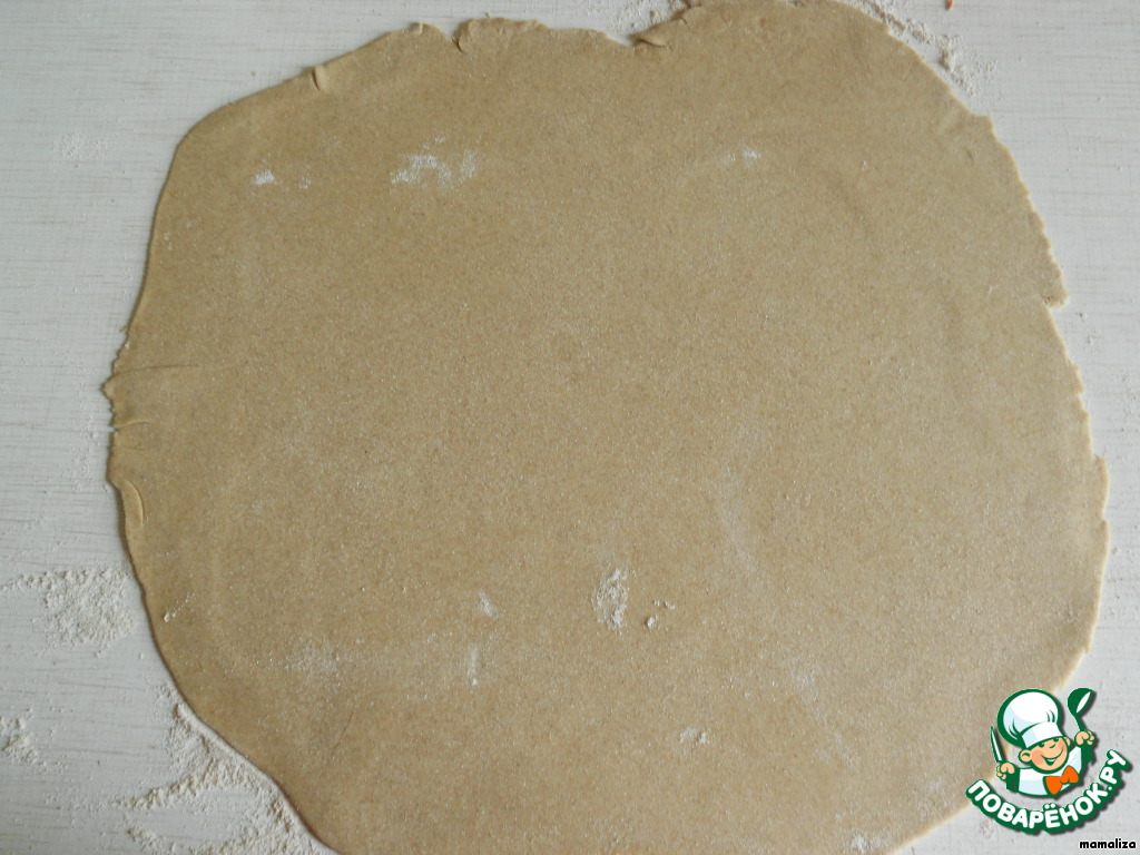 Замесить тесто из двух видов муки, растопленного сливочного масла, воды и соли. Завернуть в пленку и положить в холодильник на 30 минут.