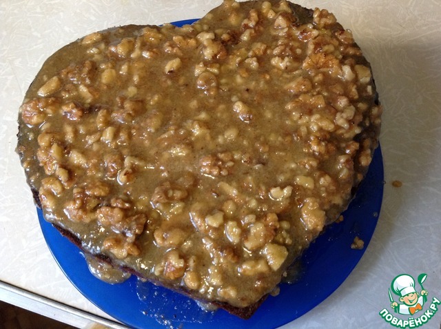 | Мега шоколадный Брауни с карамелью, грецкими орехами и коньяком. Очень ароматный и вкусный. легкий и нежный по текстуре. Брауни отправляется моей подруге и наставнику Оленьке ( Marioka 82). |