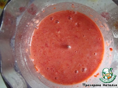 Затем измельчить в блендере вместе с сахаром и крахмалом до состояния пюре.