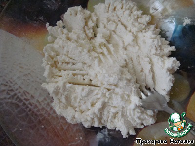 Творог хорошо растереть вилкой, чтобы не было комочков. У меня был практически без них.