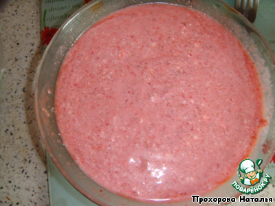 Смешать творог с клубничным пюре до однородной массы.