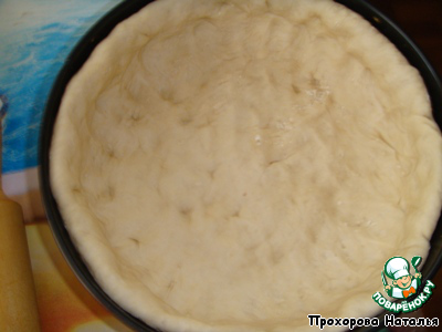 Из теста формируем пирог. Я это делала в разъемной форме, выстланной пергаментом. И даем постоять немного, чтобы тесто поднялось (10 мин.).