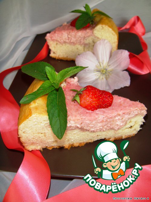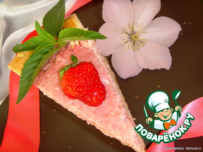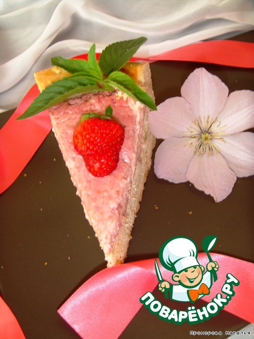 Выпекаем в разогретой духовке до 180 градусов минут 40 примерно. Пока начинка немного схватится. Дать пирогу остыть и можно украшать по Вашему желанию. Я украсила свежей клубникой и листочками мяты.