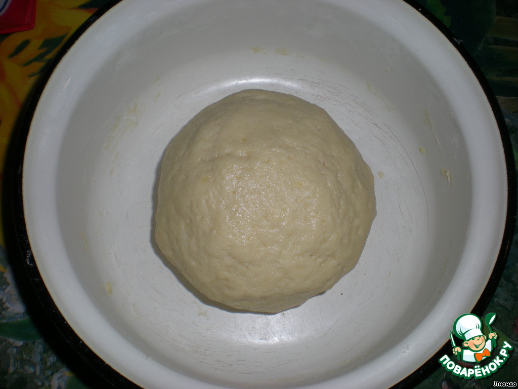 Добавить муку с разрыхлителем. Замесить мягкое тесто.