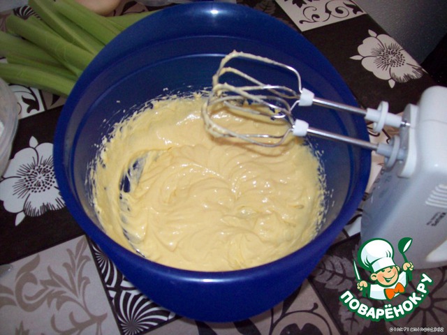 Мягкий маргарин, 100 г сахара, соль и ванильный сахар хорошенько перемешать до кремообразного сотояния.