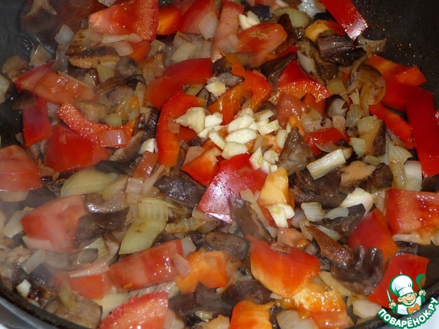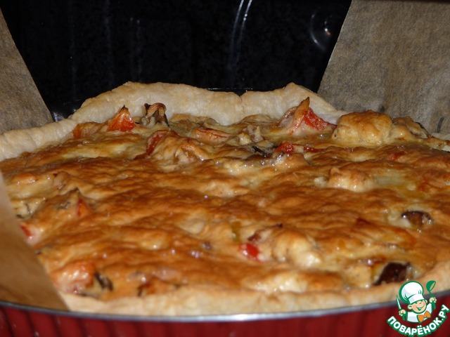 | Пирог сочный, нежный с легким пикантным вкусом болгарского перца и чесночка. Теста мало — начинки много! Сказать, что пирог вкусный - это ничего не сказать, ОН ОЧЕНЬ ВКУСНЫЙ!!! |