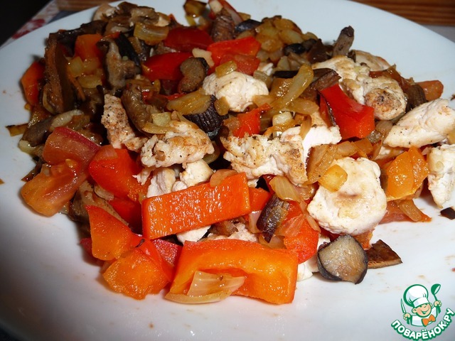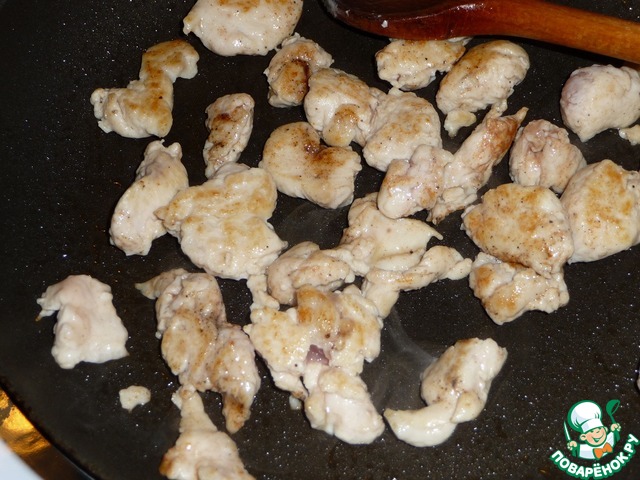 Куриное мясо обжарить слегка на сковороде в растительном масле.