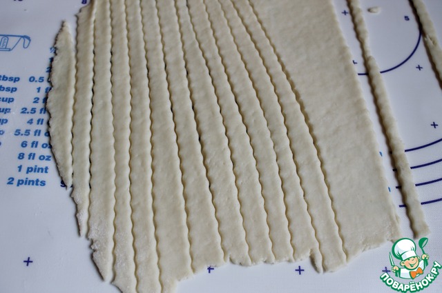 Остаток теста раскатаем и нарезаем на полоски.