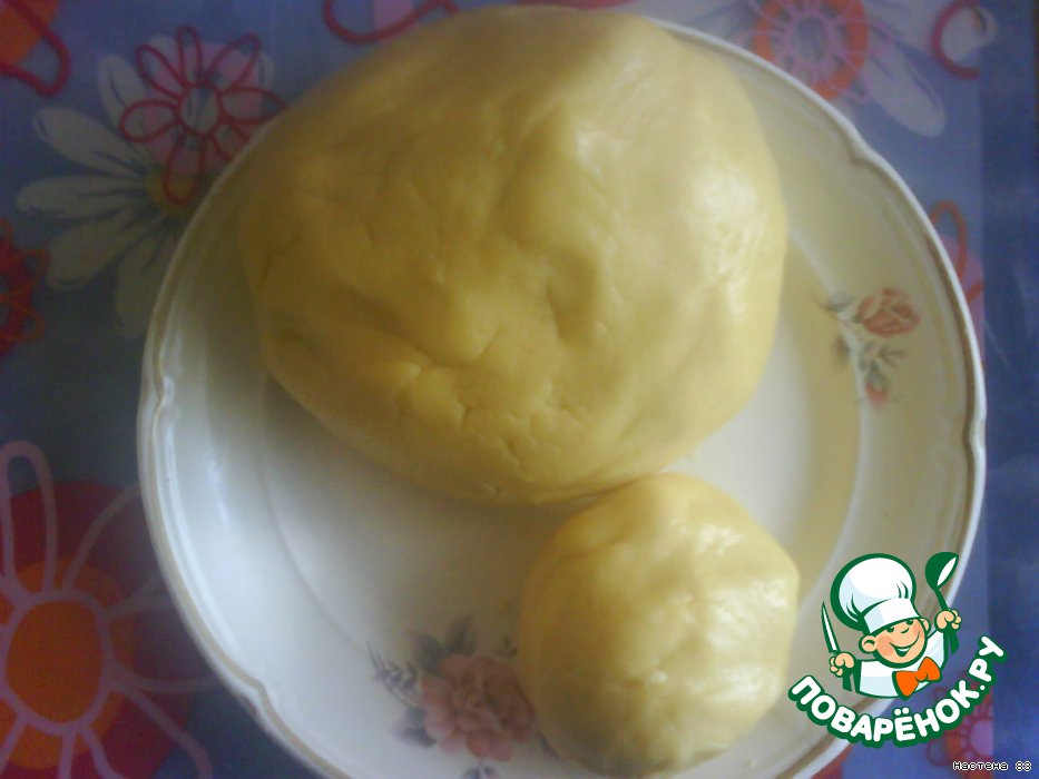 Отделить от теста кусок размером с большое яблоко и убрать в морозилку(чтоб оно стало твердым).