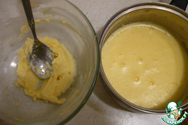 Добавьте яйца в масляную смесь, перемешайте аккуратно.