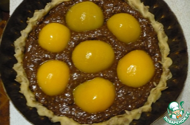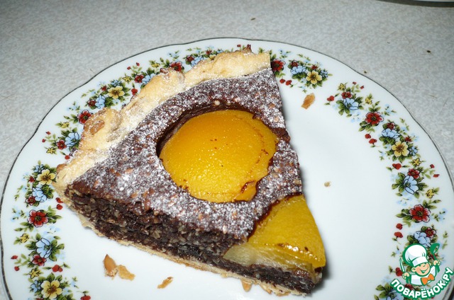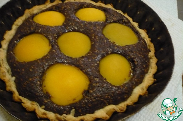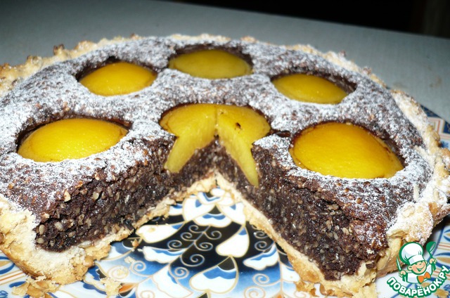 | Этот привлекательный десертный пирог делается из шоколадно-кунжутного бисквита с начинкой из персиков. Подается как холодным, так и горячим. |