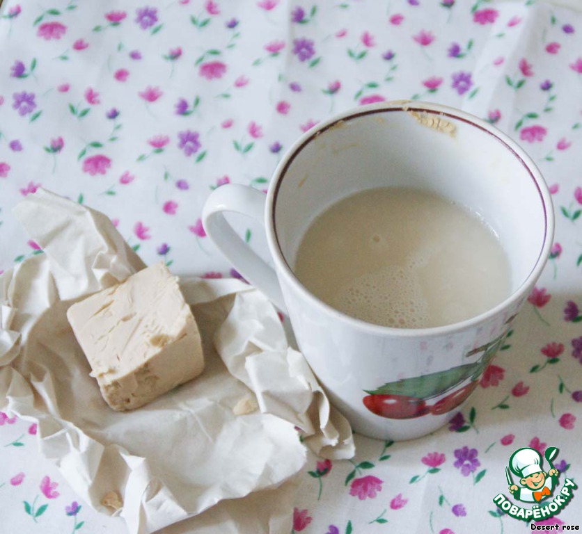 Приготовить опару для теста. Развести дрожжи в 1 стак. теплой воды, добавить 1 ч.л. сахара. Поставить в теплое место для поднятия. Дождаться появления пузырей.