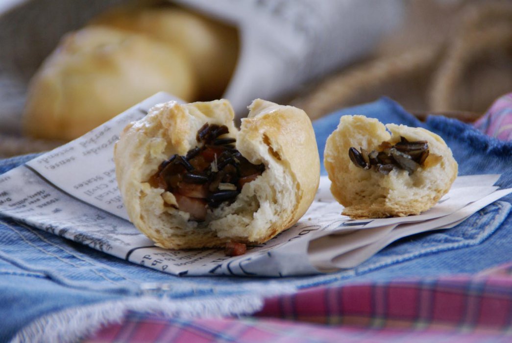 | Пирожки из слоеного дрожжевого теста с начинкой из дикого риса с жареным луком и копченой грудинкой. Покажите мне того ковбоя, который откажется от такого угощения? |