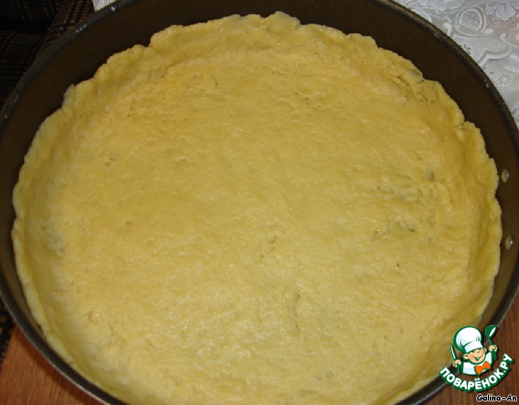 Достать тесто, раскатать, выложить в форму и сделать бортики.
