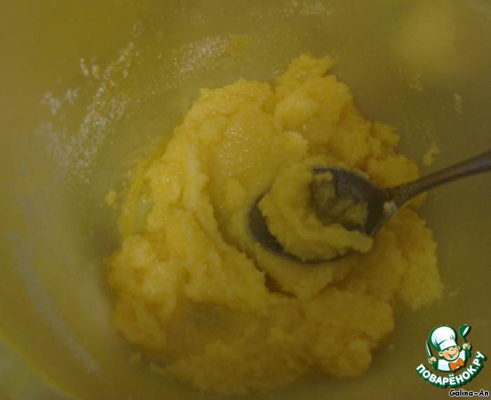 Размягченное масло, сахар и яйцо смешать до получения однородной массы.