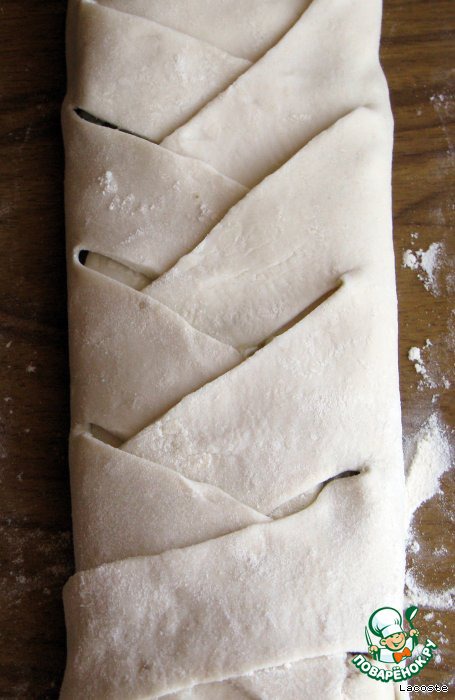 Выкладываем на противень, взбиваем яйцо и смазываем пирог.